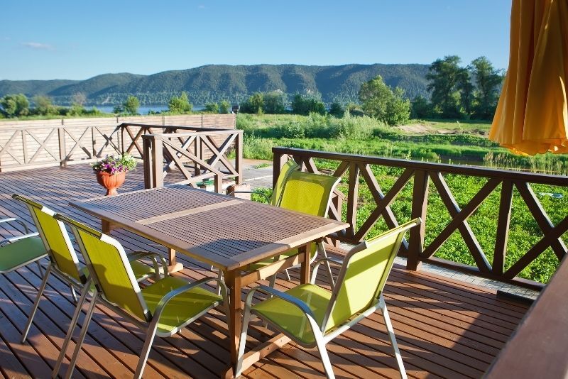 Real wood gives your patio an organic, classic look. It's comfortable to walk on and doesn't retain heat like stone or concrete. Composite decking combines wood fibres with plastic, offering the appearance of wood without the upkeep. It resists rotting, splintering, and insect damage, and doesn't require staining or sealing.